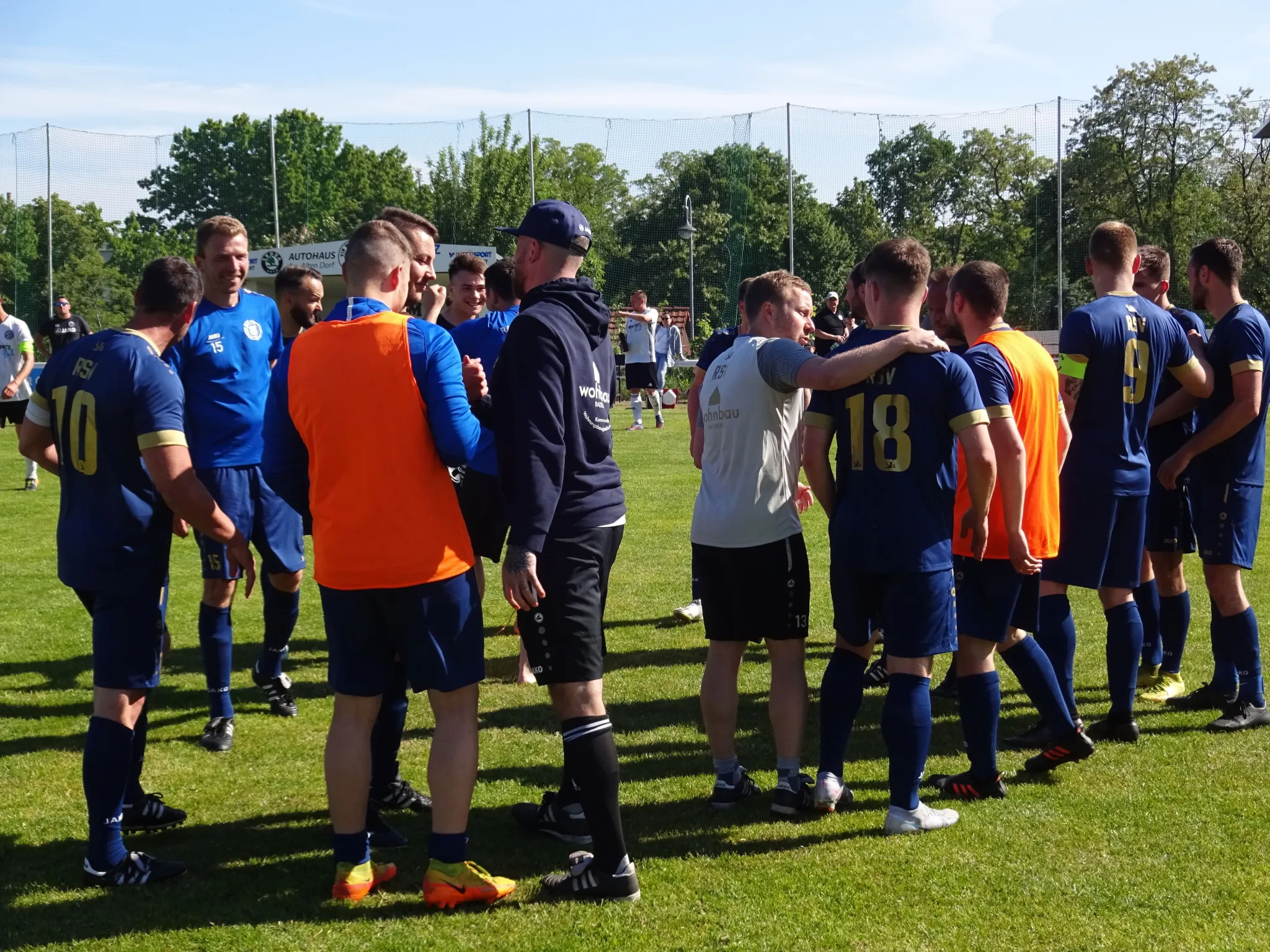 Mit diesem Auswärtssieg sollte der Klassenerhalt in trockenen Tüchern sein! Man weiß zwar nicht was der Verband bei zu vielen Absteigern oder Rückziehern aus oberen Ligen tut - aber einen "regulären" Abstiegsrang kann unsere Erste nicht mehr belegen. Vor toller Kulisse, gut bespielbaren Rasen und wunderschönem Sommerwetter entwickelte sich ein ansehnliches Fußballspiel auf sehr ansprechendem Niveau. Verteiltes Spiel zu Beginn und recht nervös agierende Gäste bestimmten das Spiel. Gelegenheiten auf beiden Seiten in Hälfte eins, allerdings die deutliche höherklassigen beim Gastgeber. Ein sehr starker Hartmann hielt für uns die "0"! In Durchgang zwei wurden dann die Gelegenheiten unserer Ersten konsequent genutzt und ein am Ende sehr deutlicher Auswärtserfolg verbucht. Grundlage für eine stimmungvolle Rückfahrt mit anschließender verdienter Feierrunde über das Stadtfest Radebergs.
