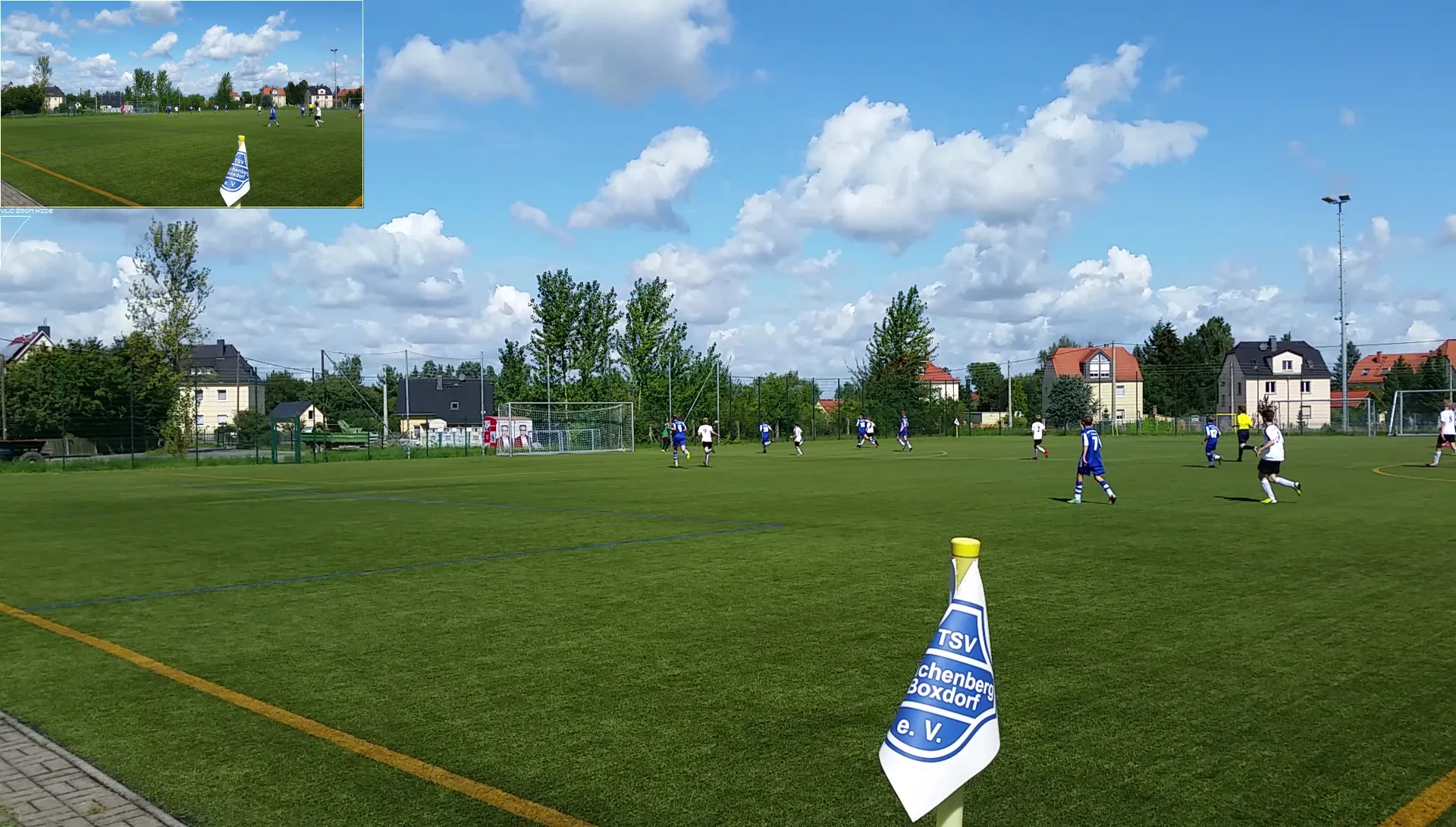 Während des Aufwärmens auf dem Rasenplatz wurde uns dann vom Gastgebertrainer mitgeteilt, dass das Spiel doch auf Kunstrasen durchgeführt wird, da leider das Abkreiden (und sicher auch die weitere Rasenpflege?) nicht stattgefunden hatte.