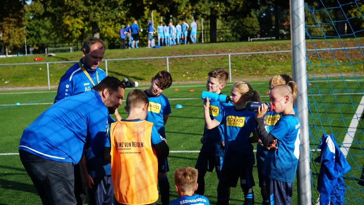 Mit einer sehr guten Mannschaftsleistung konnten die heute eingesetzten Kinder einen 84 Erfolg gegen die Sportfreunde vo Turbine Dresden erzielen. Für die Trainer war es sehr erfreulich, dass die vor dem Spiel ausgegebenen Ideen erfolgreich umgesetzt wurden. In der Halbzeit und auch nach dem Spiel gab es nur wenige Punkte zu besprechen.