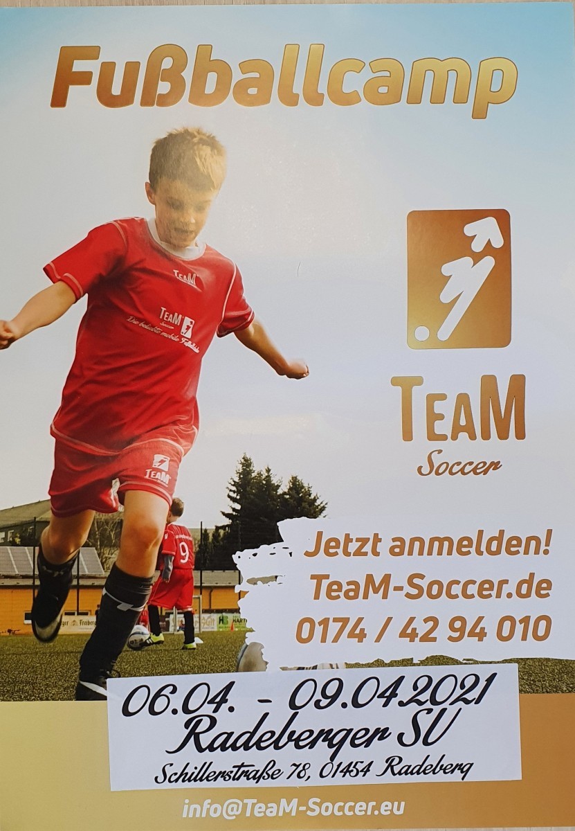 Von Team-Soccer wird vom 06.04. - 09.04.2021 solch ein Fußballcamp mit natürlich viel Fußball und einigen Überraschungen angeboten. Bei Interesse bitte unter TeaM-Soccer.de oder 0174/4294010 melden.