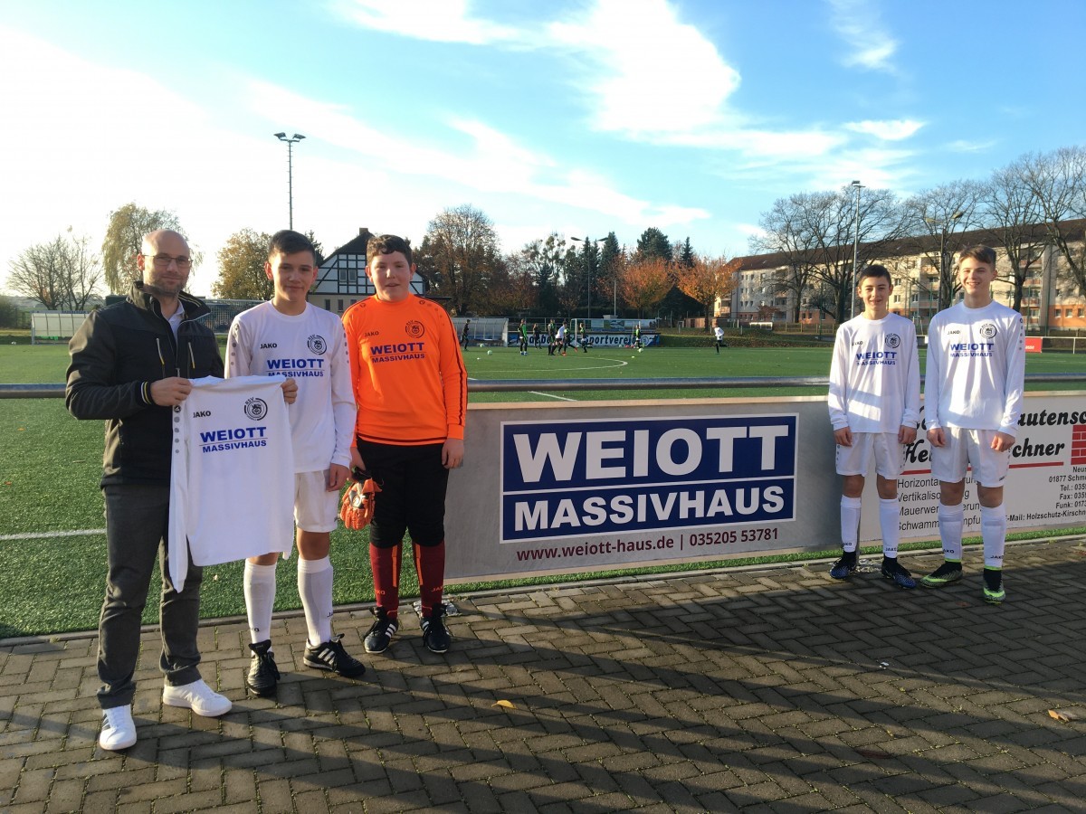 Am Samstag den 07.11.2021 übergab der Geschäftsführer, Daniel Kotlarski, der Firma WEIOTT MASSIVHAUS aus Ottendorf-Okrilla einen neuen Trikotsatz an unsere C-Jugend. Vielen Dank!